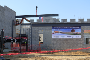 LA GRANGE — Metcon celebrated the topping out of the new new E.B. Frink Middle School on Tuesday, March 3,marking a major construction milestone, as officials and community partners signed and watched the placement of the building’s main beam.